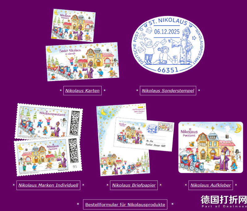 小编推荐:如果你有收集邮票的习惯的话,一定不要错过 Nikolaus Postamt 的圣诞限定!他们家的插画真的是每一年都稳稳拿捏“可爱+圣诞氛围”两大要素,比德国邮政那套 AI 邮票美太多!不仅能买到当年的自定义邮票,还有配套的明信片、戳卡、首日封,收藏感直接拉满。